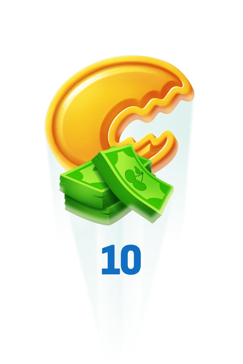 - Gevinstbeløp: x10 fra innsatsbeløp